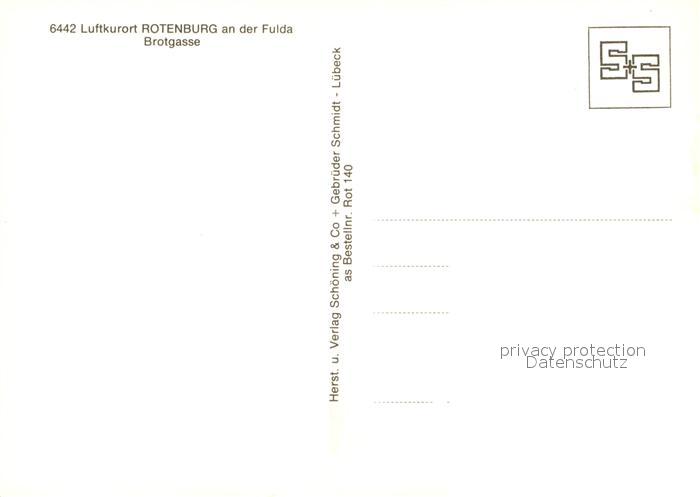 72991168 Rotenburg Fulda Brotgasse Fachwerkhaeuser Altstadt Kirchturm postalisch nicht gelaufen Erhaltung siehe scans [FriedD77] KatCode: 11110006632018