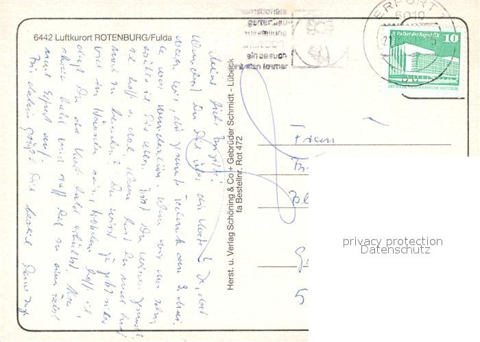 73572172 alte Postkarte Rotenburg Fulda Bundesschule der Betriebskrankenkassen Altstadt Partie am Fluss postalisch gelaufen Erhaltung siehe scans [FriedD77] KatCode: 11110006632018