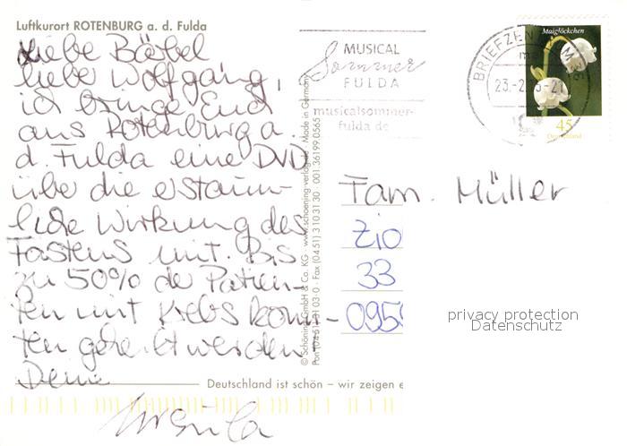 73014809 alte Postkarte Rotenburg Fulda Burg Rodenberg Details postalisch gelaufen Erhaltung siehe scans [WerneD78] KatCode: 11110006632018