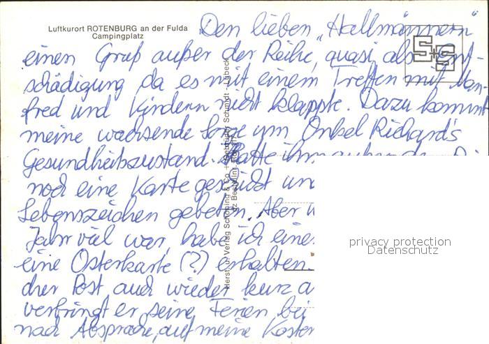 71991648 Rotenburg Fulda Camping postalisch nicht gelaufen Erhaltung siehe scans KatCode: 11110006632018