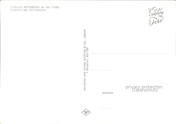 72063966 Rotenburg Fulda Ehrenmal der Vertriebenen postalisch nicht gelaufen Erhaltung siehe scans KatCode: 11110006632018