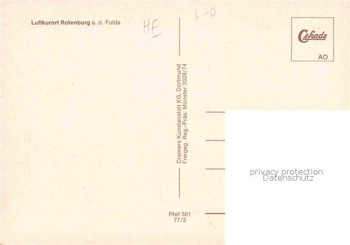 72855704 Rotenburg Fulda Fliegeraufnahme postalisch nicht gelaufen Erhaltung siehe scans [AndreD76] KatCode: 11110006632018
