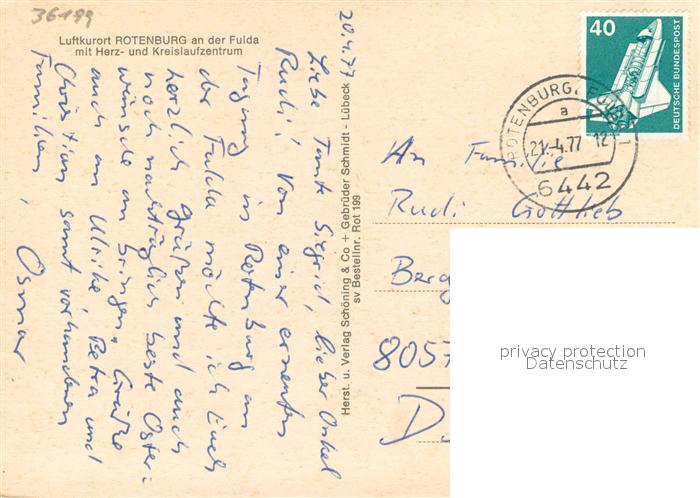 73668608 alte Postkarte Rotenburg Fulda Fliegeraufnahme bei Nacht postalisch gelaufen Erhaltung siehe scans [WerneD78] KatCode: 11110006632018
