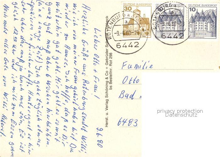73111949 alte Postkarte Rotenburg Fulda Fliegeraufnahme Steinweg Schloss postalisch gelaufen Erhaltung siehe scans [NatalD47] KatCode: 11110006632018