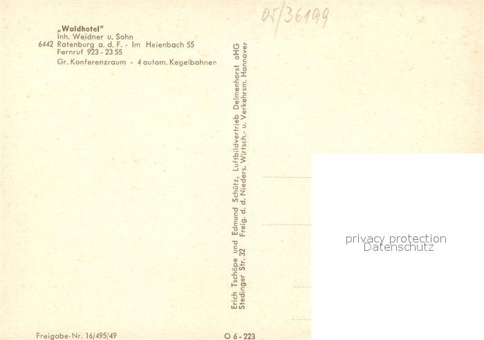 73173185 Rotenburg Fulda Fliegeraufnahme Waldhotel mit Freibad postalisch nicht gelaufen Erhaltung siehe scans [LiesaD40] KatCode: 11110006632018