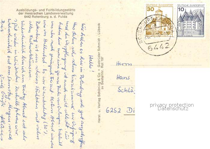 72848355 alte Postkarte Rotenburg Fulda Fortbildungsstaette Hessische Landesveraltung postalisch gelaufen Erhaltung siehe scans [KathaD81] KatCode: 11110006632018