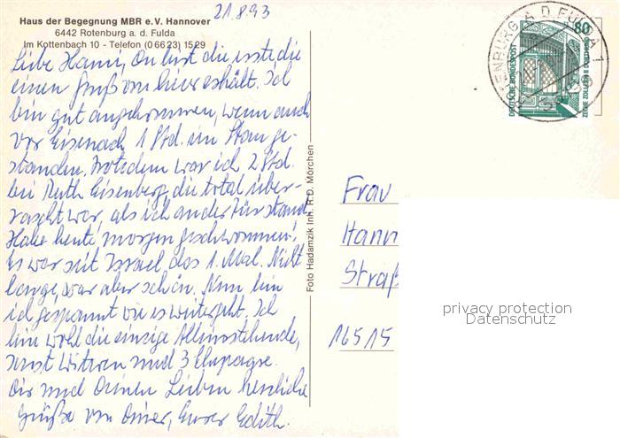 72672983 alte Postkarte Rotenburg Fulda Haus der Begegnung postalisch gelaufen Erhaltung siehe scans [AndreD76] KatCode: 11110006632018
