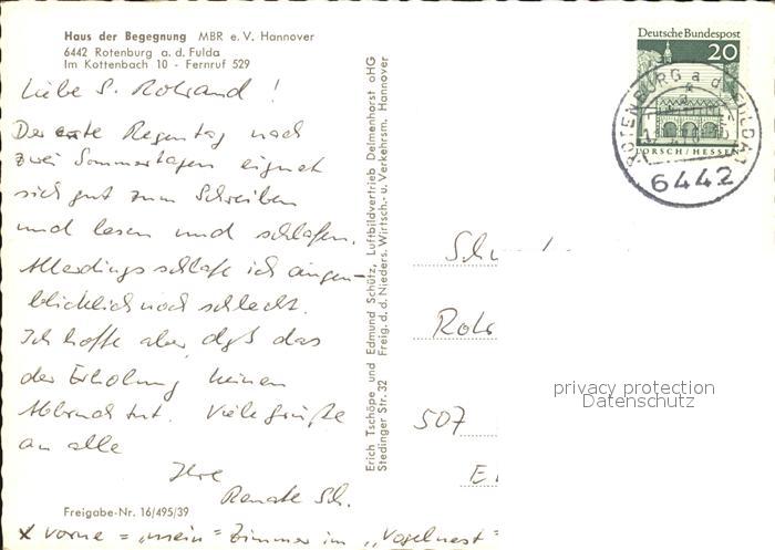 72446899 alte Postkarte Rotenburg Fulda Haus der Begegnung Fliegeraufnahme postalisch gelaufen Erhaltung siehe scans KatCode: 11110006632018