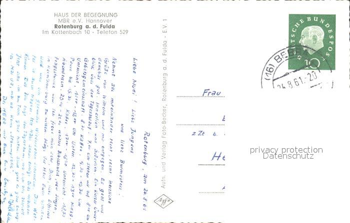 72261508 alte Postkarte Rotenburg Fulda Haus der Begegnung Kaminzimmer postalisch gelaufen Erhaltung siehe scans KatCode: 11110006632018