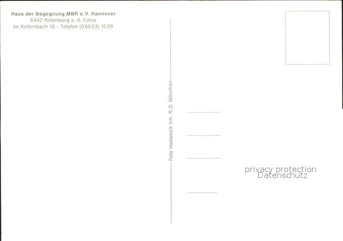 71932093 Rotenburg Fulda Haus der Begegnung MBR eV Hannover postalisch nicht gelaufen Erhaltung siehe scans KatCode: 11110006632018
