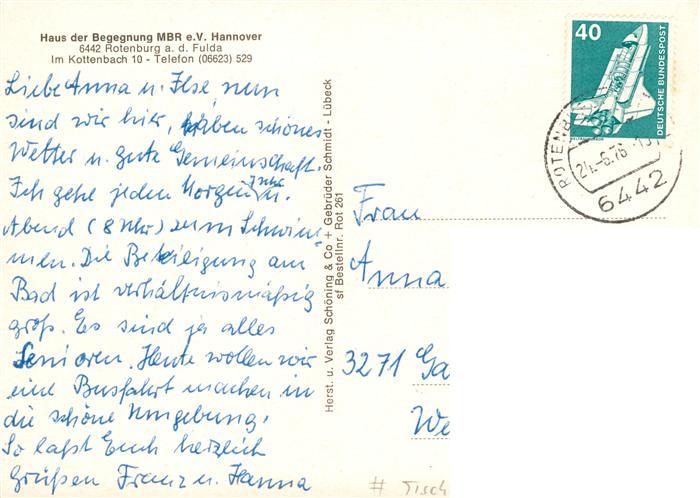 73892474 alte Postkarte Rotenburg Fulda Haus der Begegnung MBR Vortragssaal Diele Trimm Dich Raum Clubraum postalisch gelaufen Erhaltung siehe scans [WerneD78] KatCode: 11110006632018