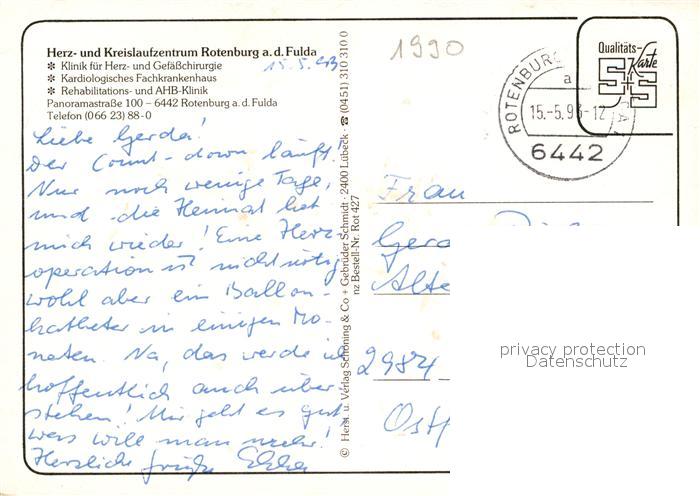 73063831 alte Postkarte Rotenburg Fulda Herz Kreislauf Zentrum Freizeitwerkstatt Bewegungsbad Treffpunkt Speisesaal Leseraum postalisch gelaufen Erhaltung siehe scans [FriedD77] KatCode: 11110006632018