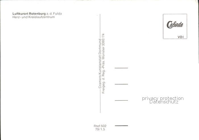 72560653 Rotenburg Fulda Herz Kreislaufzentrum postalisch nicht gelaufen Erhaltung siehe scans [KathaD79] KatCode: 11110006632018