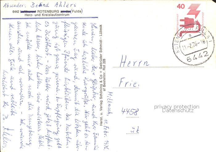 72243452 alte Postkarte Rotenburg Fulda Herz-und Kreislaufzentrum postalisch gelaufen Erhaltung siehe scans KatCode: 11110006632018