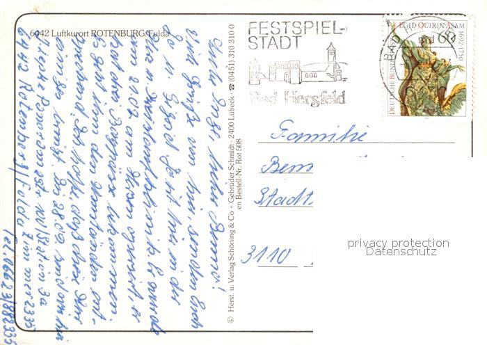 72946525 alte Postkarte Rotenburg Fulda Herz- und Kreislaufzentrum postalisch gelaufen Erhaltung siehe scans [LiesaD40] KatCode: 11110006632018