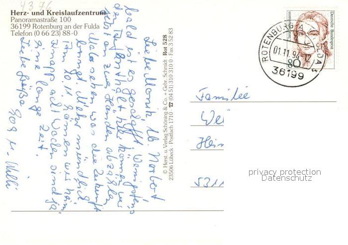 73205229 alte Postkarte Rotenburg Fulda Herz- und Kreislaufzentrum Brunnen Klinik Fliegeraufnahme postalisch gelaufen Erhaltung siehe scans [FriedD77] KatCode: 11110006632018