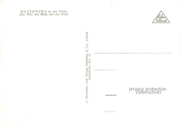 74036420 Rotenburg Fulda Hessen Aussichtspunkt Der Pilz mit Blick auf die Stadt Kupfertiefdruck postalisch nicht gelaufen Erhaltung siehe scans [FriedD77] KatCode: 11110006632018