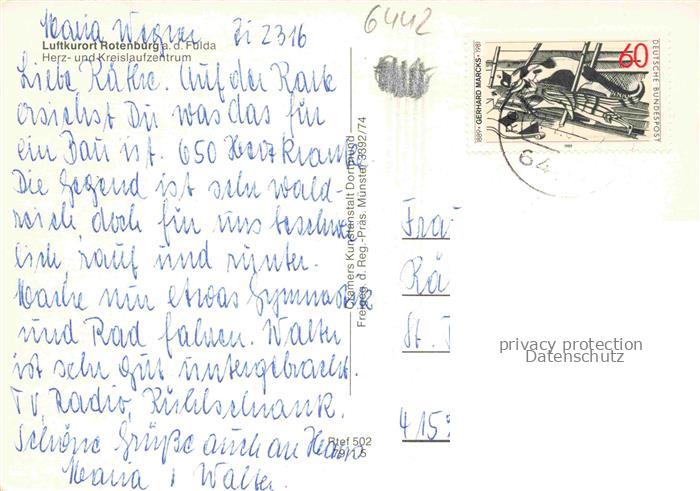 74084737 alte Postkarte Rotenburg Fulda Hessen Herz und Kreislaufzentrum postalisch gelaufen Fliegeraufnahme Erhaltung siehe scans [WerneD78] KatCode: 11110006632018