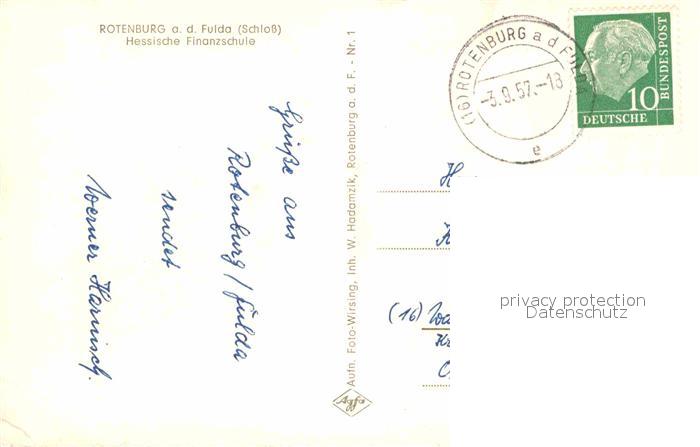 72771250 alte Postkarte Rotenburg Fulda Hessische Finanzschule postalisch gelaufen Erhaltung siehe scans [AndreD76] KatCode: 11110006632018