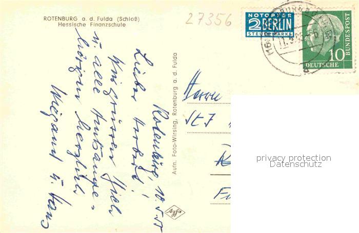 72892326 alte Postkarte Rotenburg Fulda Hessische Finanzschule postalisch gelaufen Erhaltung siehe scans [KathaD81] KatCode: 11110006632018