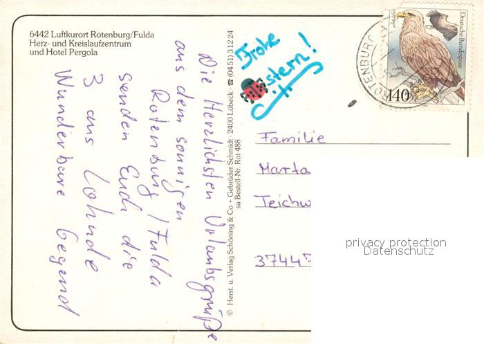 73071189 alte Postkarte Rotenburg Fulda Hotel Pergola Herz- Kreislaufzentrum postalisch gelaufen Erhaltung siehe scans [NatalD47] KatCode: 11110006632018