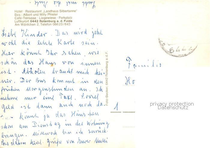 73845526 Rotenburg Fulda Hotel Restaurant Silbertanne Gastraeume postalisch nicht gelaufen Erhaltung siehe scans [WerneD78] KatCode: 11110006632018