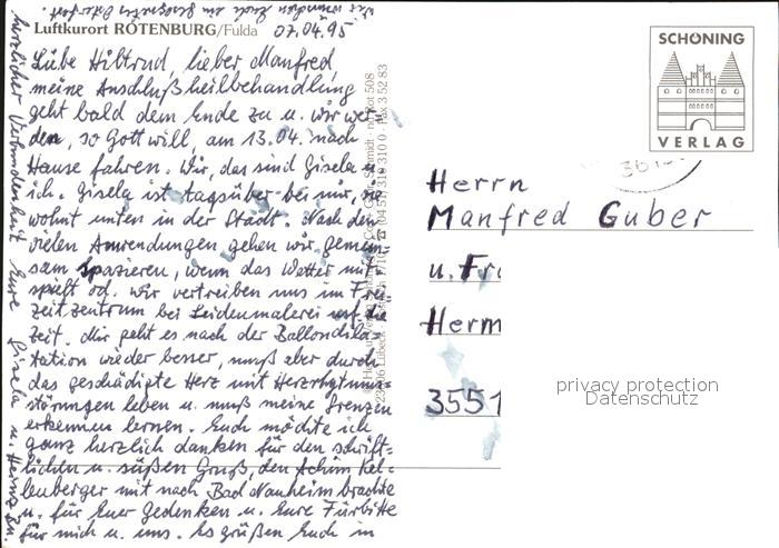 72415191 Rotenburg Fulda Hotel Rodenberg postalisch nicht gelaufen Erhaltung siehe scans KatCode: 11110006632018
