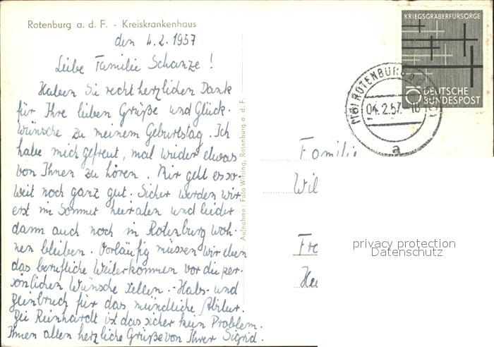 72131704 alte Postkarte Rotenburg Fulda Kreiskrankenhaus postalisch gelaufen Erhaltung siehe scans KatCode: 11110006632018
