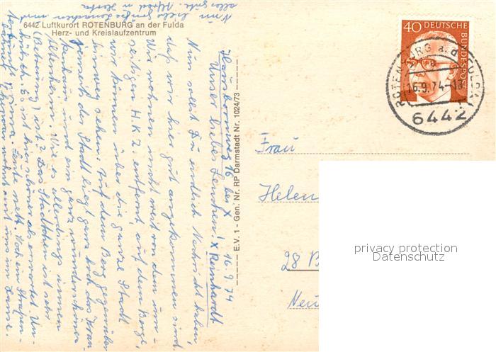 73080598 alte Postkarte Rotenburg Fulda Kurklinik Fliegeraufnahme postalisch gelaufen Erhaltung siehe scans [KathaD81] KatCode: 11110006632018
