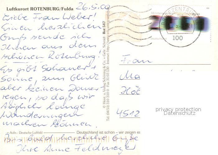 73322407 alte Postkarte Rotenburg Fulda Luftkurort Fliegeraufnahme postalisch gelaufen Erhaltung siehe scans [FriedD77] KatCode: 11110006632018