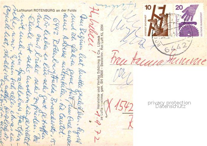 72835128 alte Postkarte Rotenburg Fulda Luftkurort Fliegeraufnahme postalisch gelaufen Erhaltung siehe scans [FriedD77] KatCode: 11110006632018