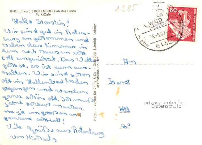 72932248 alte Postkarte Rotenburg Fulda Park-Cafe postalisch gelaufen Erhaltung siehe scans [LiesaD40] KatCode: 11110006632018