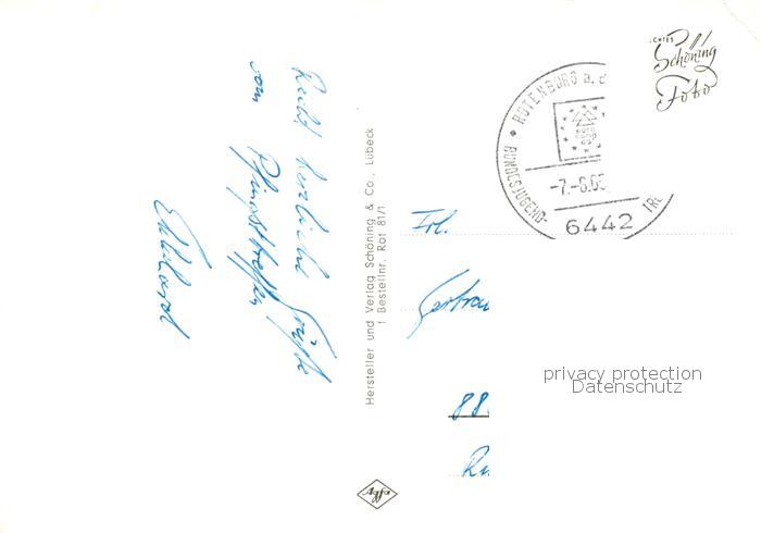73865714 alte Postkarte Rotenburg Fulda Rathaus mit Kump Schloss Altstadt mit Hoeberick Brotgasse Kirche euro camp 65 Bungesjugendtreffen der DAG postalisch gelaufen Erhaltung siehe scans [FriedD77] KatCode: 11110006632018
