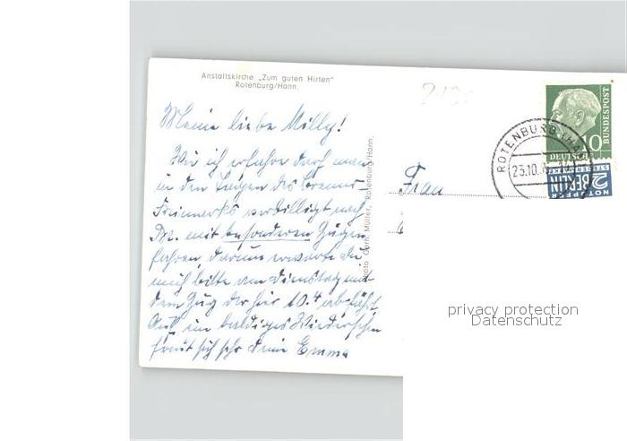 41619954 alte Postkarte Rotenburg Wuemme Anstaltskirche Zum guten Hirten postalisch gelaufen Erhaltung siehe scans KatCode: 11110003357039