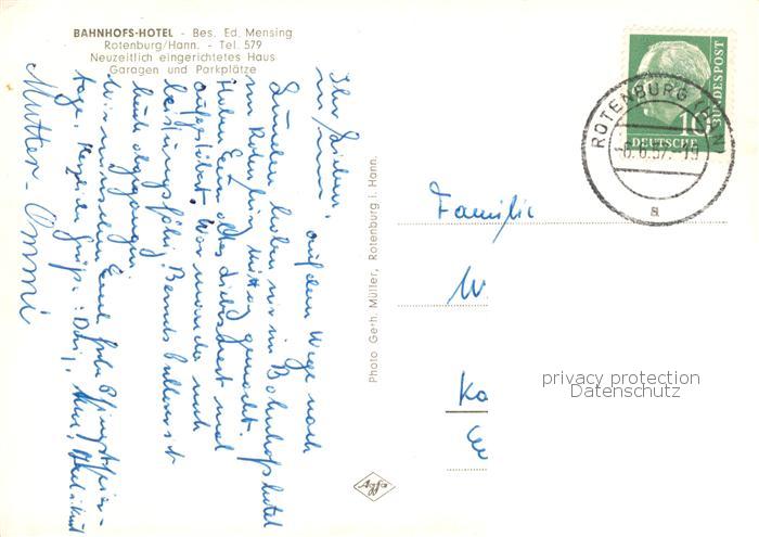 73854613 alte Postkarte Rotenburg Wuemme Bahnhofs Hotel postalisch gelaufen Erhaltung siehe scans [WerneD78] KatCode: 11110003357039