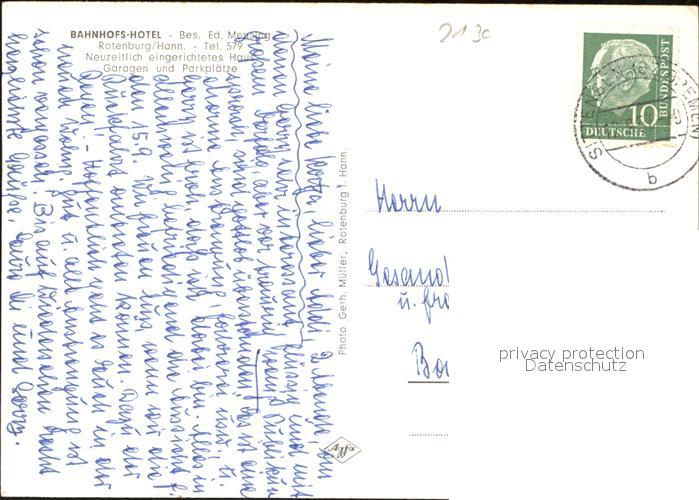 41586731 Rotenburg Wuemme Bahnhofs Hotel postalisch gelaufen Erhaltung siehe scans Alte Ansichtskarte Postkarte alte Postkarte hz_F Katcode 11110003357039