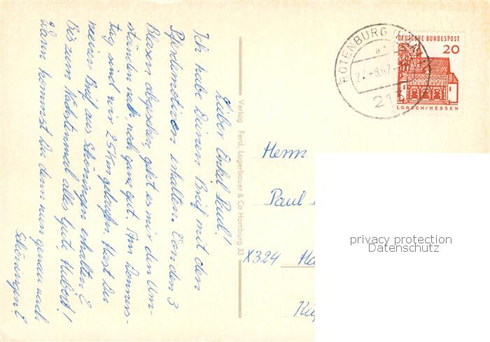 73840466 alte Postkarte Rotenburg Wuemme Goethestrasse Bullensee Jugendherberge Kirchenstrasse Heimatmuseum Pferdemarkt Grossestrasse Am Wasser Kreishaus postalisch gelaufen Erhaltung siehe scans [WerneD78] KatCode: 11110003357039