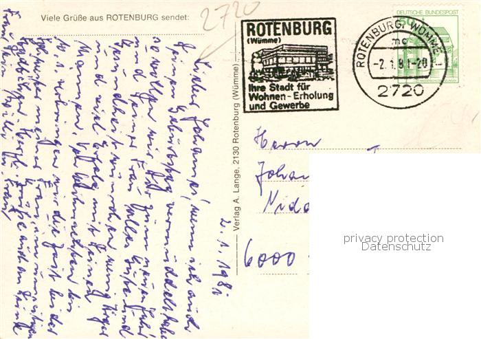 73839683 alte Postkarte Rotenburg Wuemme Kirchstrasse Soldatenheim Partie Hastedter Heide Bullensee Federlohmuehle postalisch gelaufen Erhaltung siehe scans [FriedD77] KatCode: 11110003357039