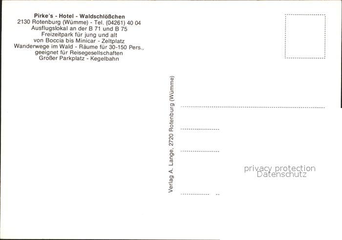 72323919 Rotenburg Wuemme Pirkes Hotel Waldschloesschen postalisch nicht gelaufen Erhaltung siehe scans KatCode: 11110003357039
