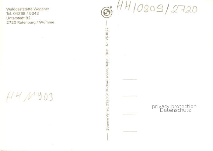 73197200 Rotenburg Wuemme Waldgaststaette Wegener postalisch nicht gelaufen Erhaltung siehe scans [FriedD77] KatCode: 11110003357039