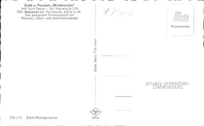 41767895 Rotensol Cafe Pension Waldesruhe postalisch nicht gelaufen Erhaltung siehe scans KatCode: 11110008235033