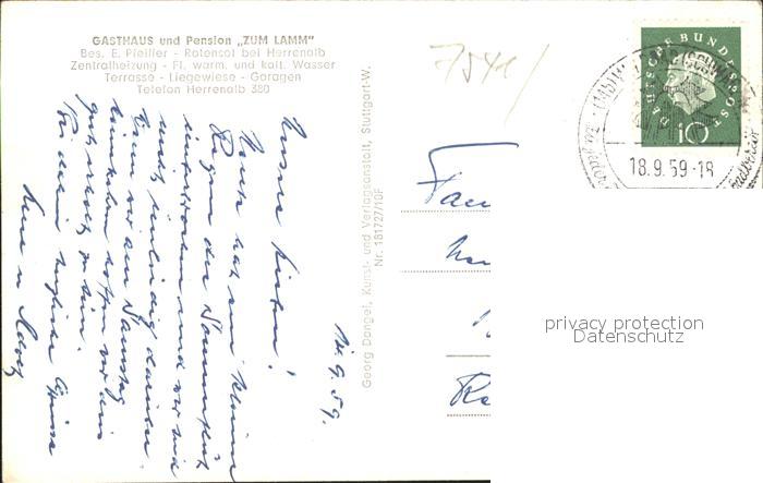 31714208 alte Postkarte Rotensol Gasthaus Pension zum Lamm postalisch gelaufen Erhaltung siehe scans KatCode: 11110008235033