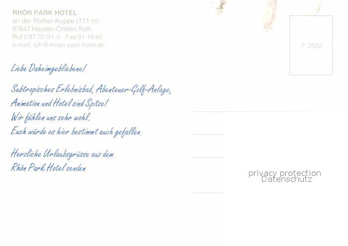 72852027 Roth Hausen Rhoen Rhoen Park Hotel postalisch nicht gelaufen Erhaltung siehe scans [NatalD47] KatCode: 11110009673129