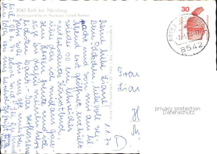 72505819 alte Postkarte Roth Nuernberg Eckengemaelde Prunksaal Schloss Ratibor postalisch gelaufen Erhaltung siehe scans KatCode: 11110009576143