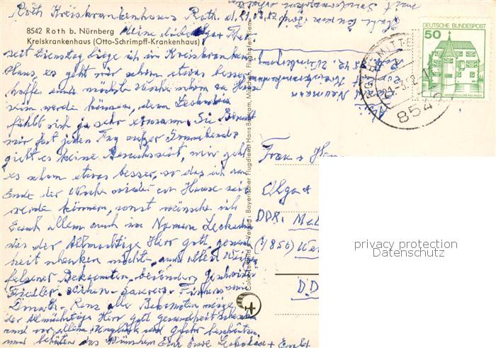 73787959 alte Postkarte Roth Nuernberg Kreiskrankenhaus Otto Schrimpff Krankenhaus postalisch gelaufen Fliegeraufnahme Erhaltung siehe scans [FriedD77] KatCode: 11110009576143