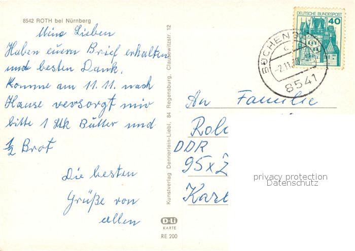73671564 alte Postkarte Roth Nuernberg Schloss Ratibor Altstadt Hauptstrasse Gusseisernes Tor Schwimmbad postalisch gelaufen Erhaltung siehe scans [FriedD77] KatCode: 11110009576143