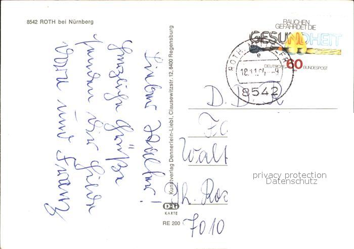 72543331 alte Postkarte Roth Nuernberg Schloss Ratibor Hauptstrasse Schwimmbad postalisch gelaufen Erhaltung siehe scans [WerneD78 kv016box] KatCode: 11110009576143