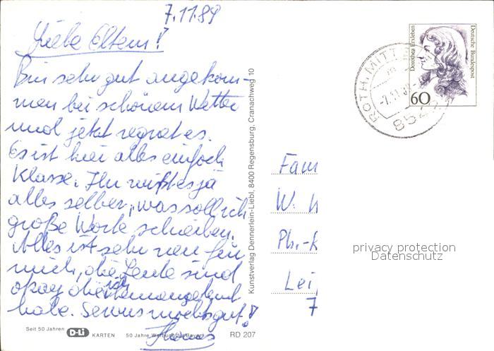 72567139 alte Postkarte Roth Pruem Markgrafenbrunnen Seckendorff-Schloss Augustinum Kirchen postalisch gelaufen Erhaltung siehe scans [LiesaD40] KatCode: 11110007232302