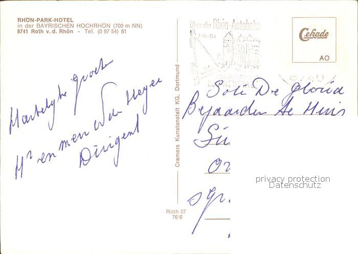 72603359 alte Postkarte Roth Rhoen-Grabfeld Rhoen Park Hotel in der Bayrischen Hochrhoen Restaurant Terrasse postalisch gelaufen Erhaltung siehe scans [FriedD77] KatCode: 11110009673129