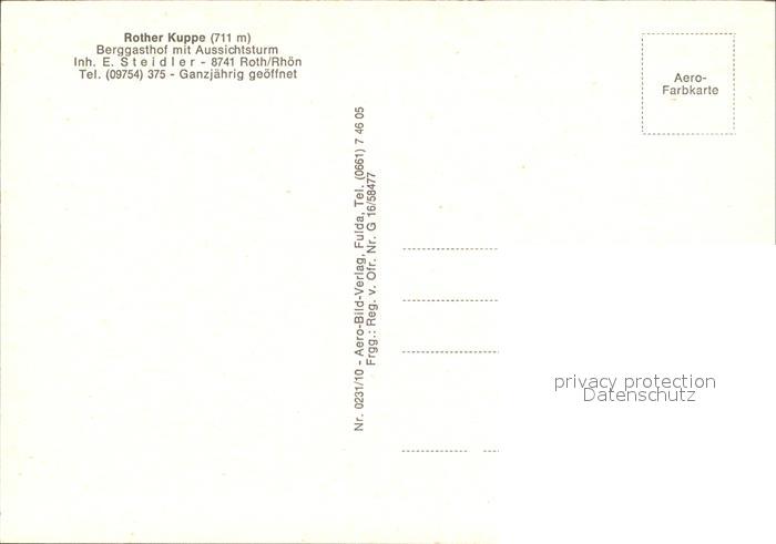 72033837 Roth Rhoen-Grabfeld Rother Kuppe Berggasthof Aussichtsturm Fliegeraufnahme postalisch nicht gelaufen KatCode: 11110009673129